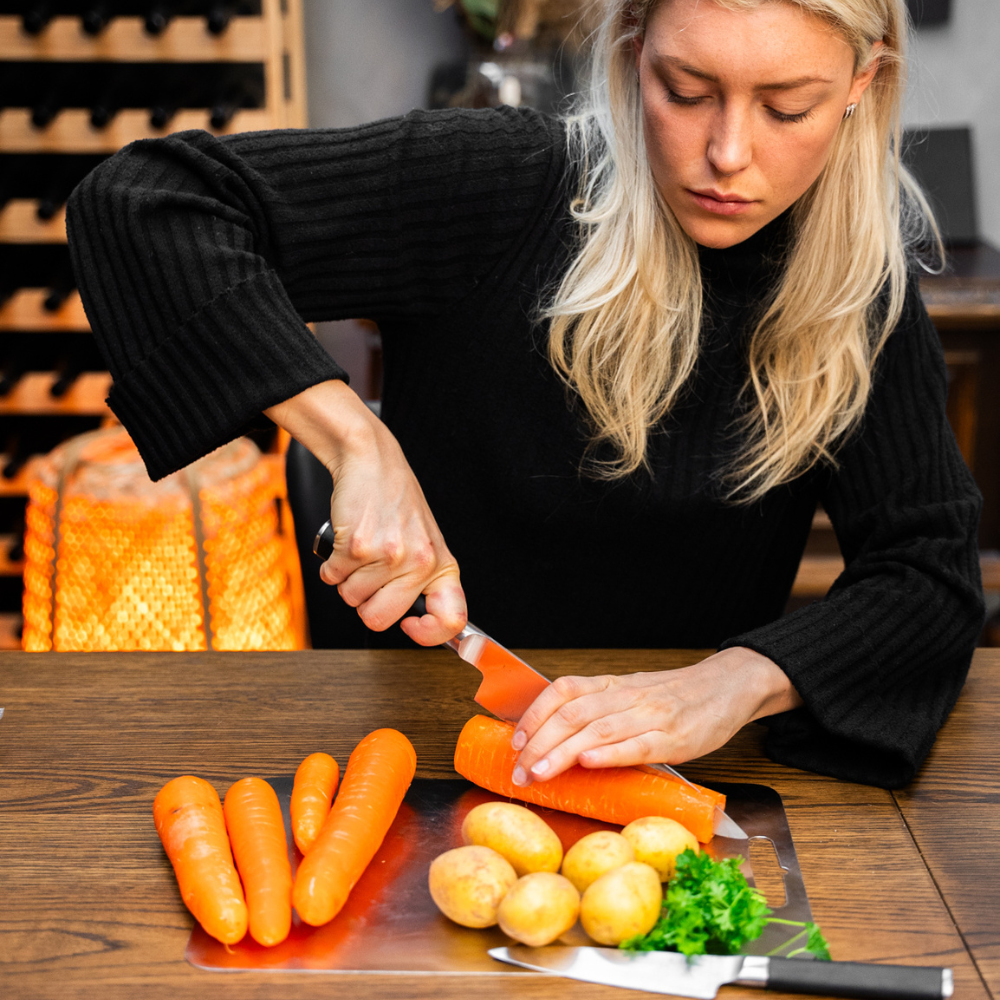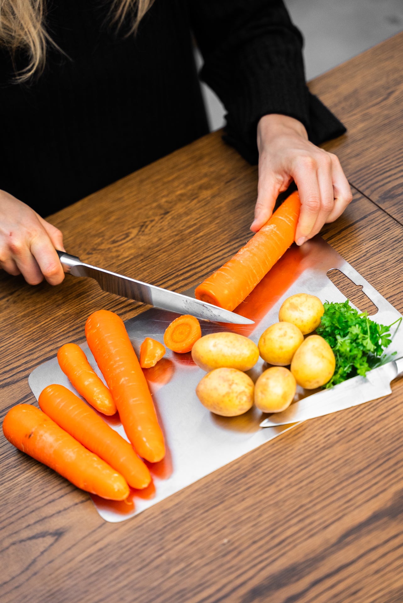 Nordic Cook skærebrættet er fremstillet i høj-kvalitets rustfrit stål, som ikke bøjer, revner eller mister formen. Det tåler både hårde knive og daglig brug uden at tage skade. Et pålideligt valg, uanset om du laver mad til dig selv eller hele familien.