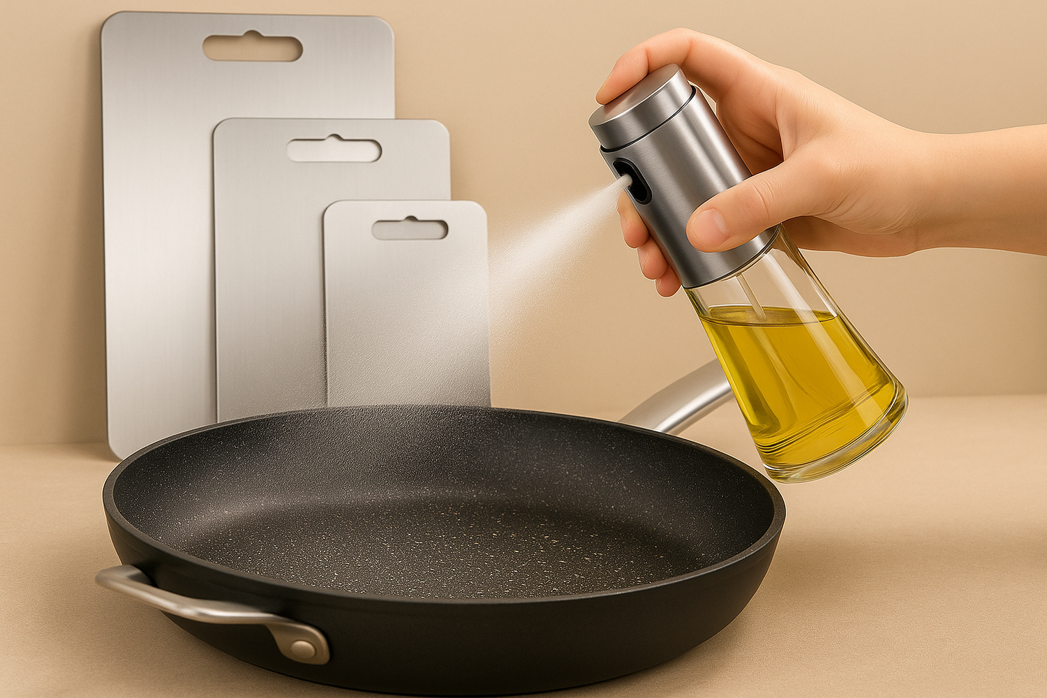 Vores oliespray er ikke bare funktionel – den er også designet til at passe ind i det nordiske køkken. Fremstillet i premium rustfrit stål, hygiejnisk, elegant og lavet til at stå fremme. Holdbart design du kan bruge igen og igen.