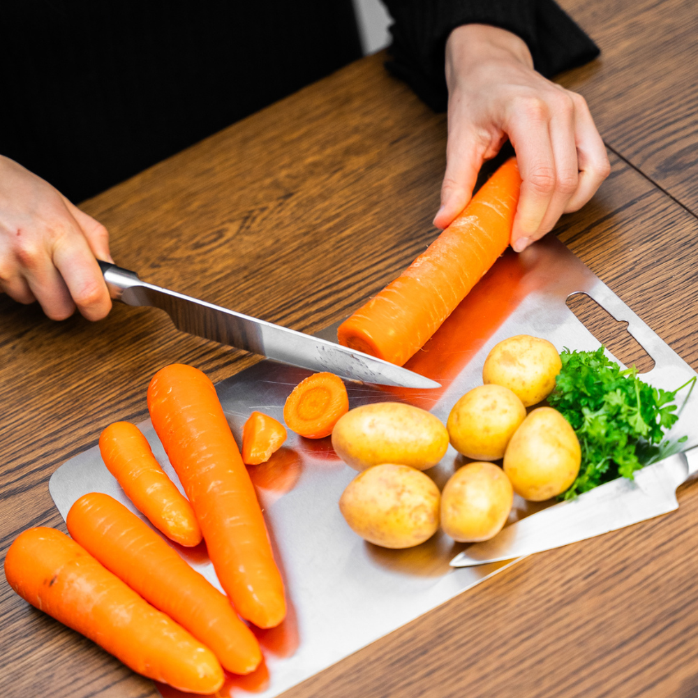 Vores skærebræt i rustfrit stål giver dig en ren madlavning HVER gang.